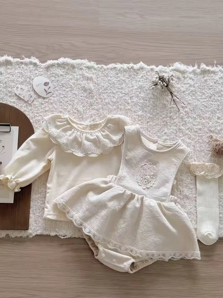 The Bellunor 2-Piece Set (Ruffled Top + Lace-Detail Dress) is a sweet and versatile outfit set designed for baby girls from everyday outings to special photo moments. Featuring a soft ruffled top paired with a matching lace-detail dress, this set offers a charming dressed-up look while staying comfortable for little ones to move around in. Lightweight and easy to layer, it is especially suitable for warmer seasons and transitional weather.