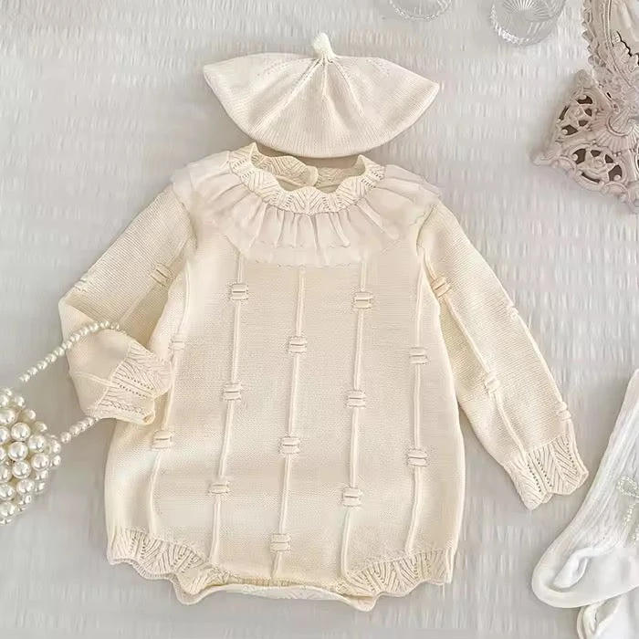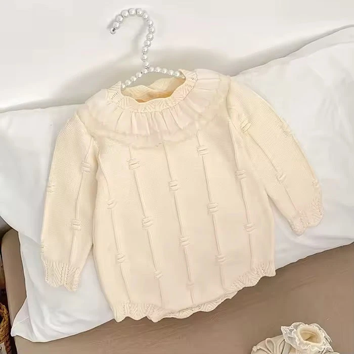 The Bellunor Textured Knit Romper is a cosy and charming one-piece designed for babies through cooler seasons. Made from soft textured knit, this long-sleeve romper offers warmth, comfort, and easy movement for everyday wear. Finished with sweet ruffled trim, it brings a softly dressed-up look while still feeling practical enough for daily play, outings, and seasonal layering.